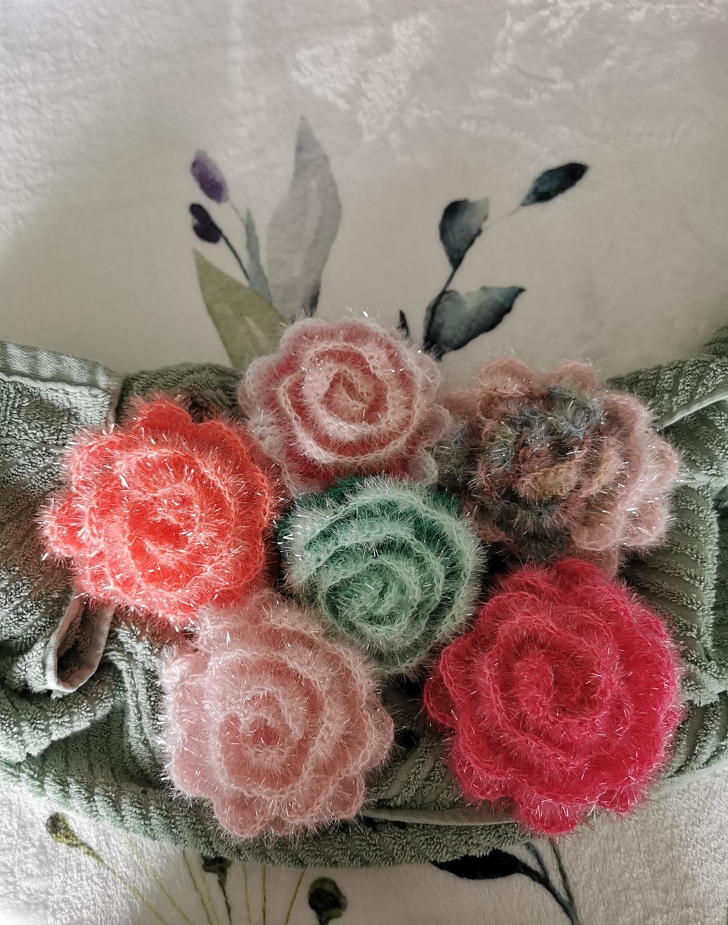 Selbst gehäkelte Peelingschwämme aus hochwertigem Rico "Creative Bubble" Garn.