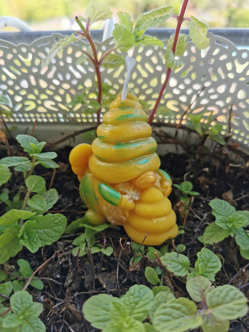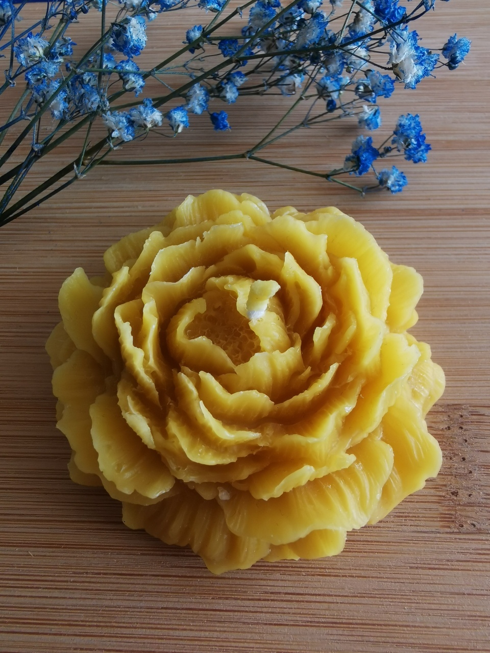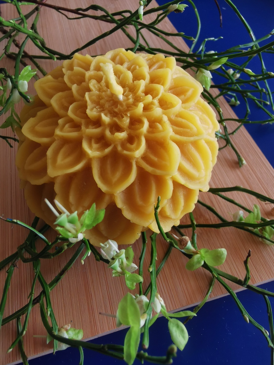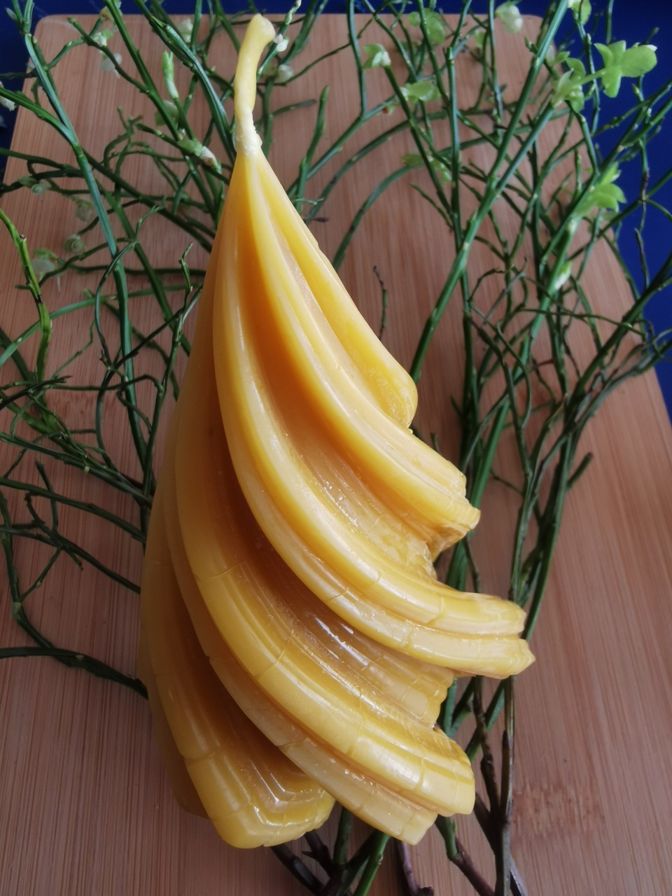 Die selbst gegossenen Kerzen gibt es in verschiedenen Farben, die ich bei Interesse gerne zeigen kann.